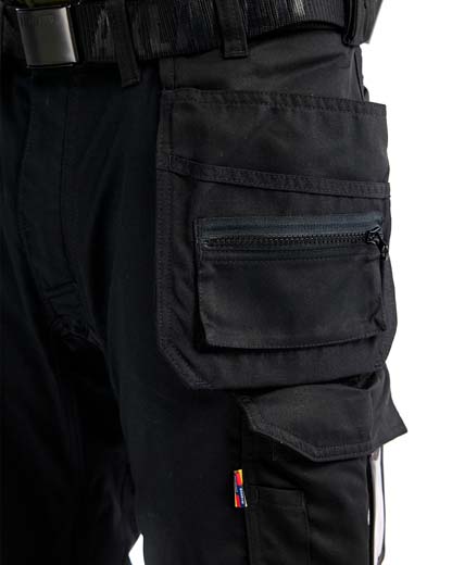 Buksen har faste spikerlommer, kneputelommer i CORDURA®-stretch og åpning i bunnen, praktiske lommer med forsterkning, tommestokklomme, frontlommer samt hammerhempe på både høyre og venstre side.