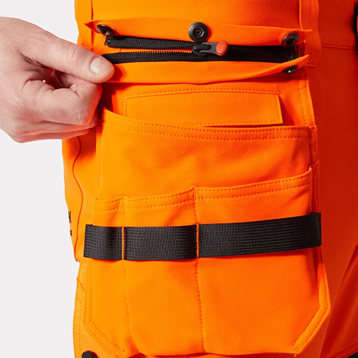 - Lårlomme med YKK®-glidelås, festespenne og innebygd mobillomme