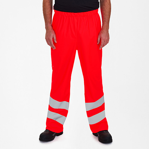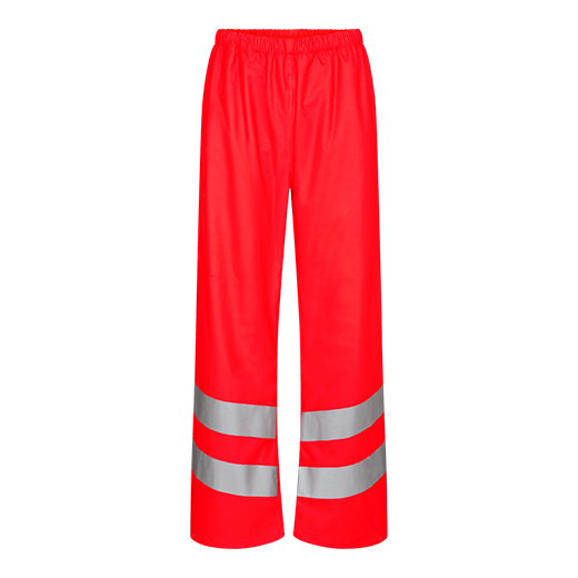 Funksjonelle regnbukser med sveisede sømmer. Justerbar elastisk midje. Funksjonell tommestokklomme. Justerbar benvidde nederst på buksebena. Klesklasse 2. Testet etter 5 vask.